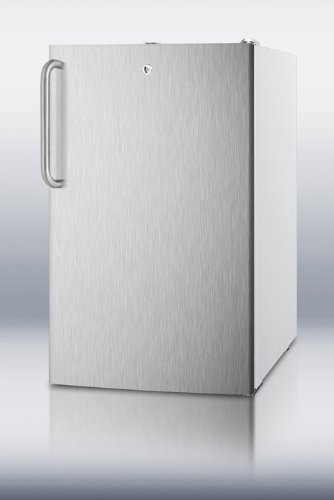 Summit CM411LSSTBADA 4.1 cu. ft. Compact Refrigerator with 2 Adjustable Wire Shelves, Manual Defrost, Door Lock, ADA Height Compliance and White Cabinet: Stainless Steel Door with Towel Bar Handle